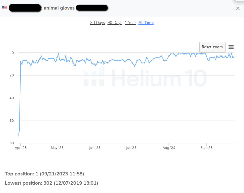Animal Gloves had been in the portfolio for years but had lost traction, with a historic low of 302 in December 2019. In 2023, the team initiated a re-rank program focused on rebuilding keyword relevance, seasonal promotions, and sustained organic ranking activities.